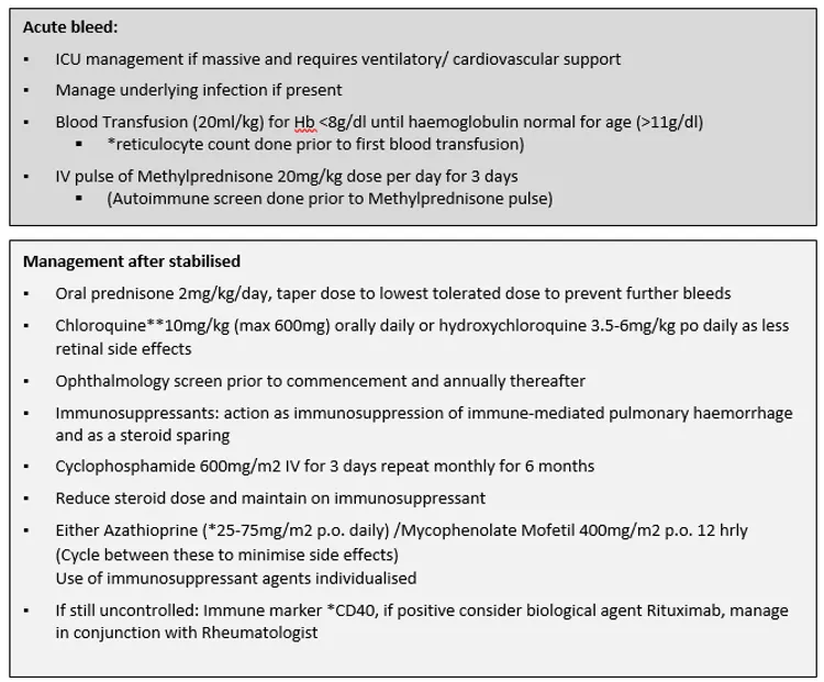 Figure 1: Management of Children with Diffuse Alveolar Haemorrhage