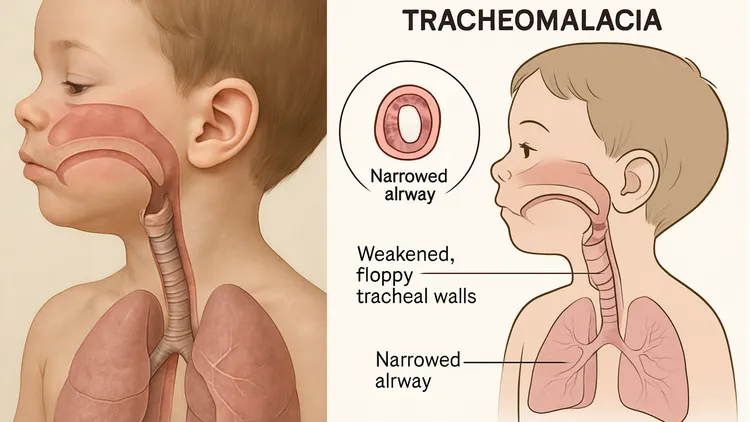 - Mild tracheomalacia (<75% collapse) usually resolves by age two without intervention, but parents need reassurance and CPR training if “dying spells” occur.
