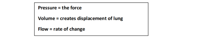 - The physics underlying mechanical ventilation can be effectively described with the use of three key parameters: pressure, volume, and flow.